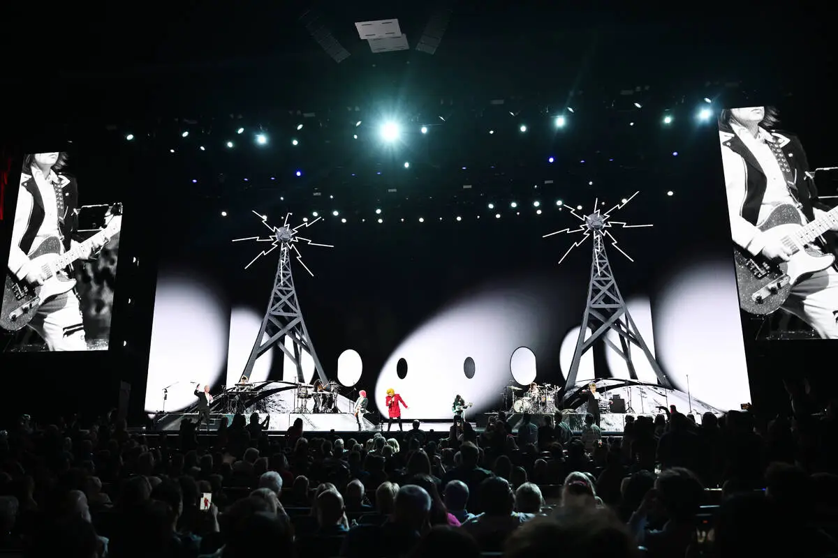 — “Girls Just Wanna Have Fun”, interpretada tras una elaborada introducción a la obra de la artista japonesa Yayoi Kusama, de 97 años. El espectáculo visual se llenó de lunares rojos y blancos, presentes en los trajes de la banda y que llenaban con fuerza las pantallas de vídeo. Un retrato gigante de la artista se proyectaba sobre la escena.