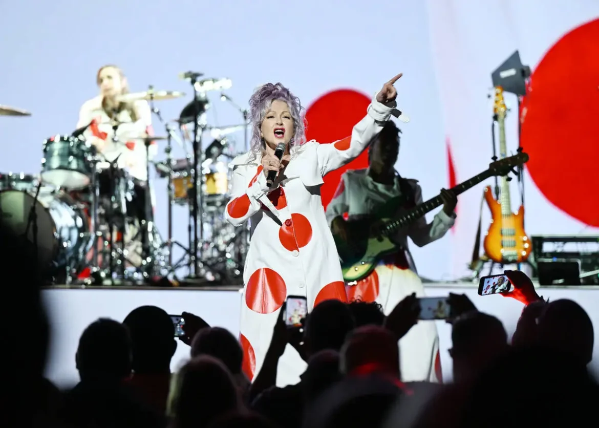 Entre los éxitos esperados, intercalados en los monólogos, «She Bop» fue la canción de apertura que evocó la nostalgia. «True Colors» se proyectó con arcoíris en la pantalla grande. Ordenó que iluminaran la sala con las luces de los teléfonos móviles para «Time After Time».