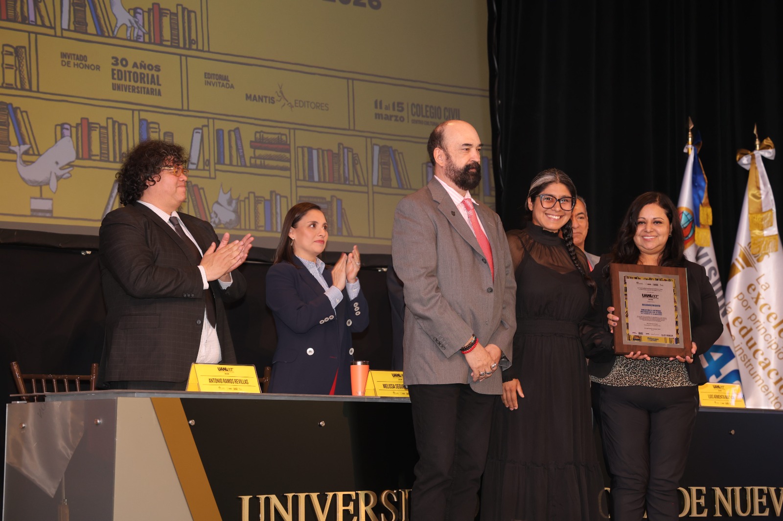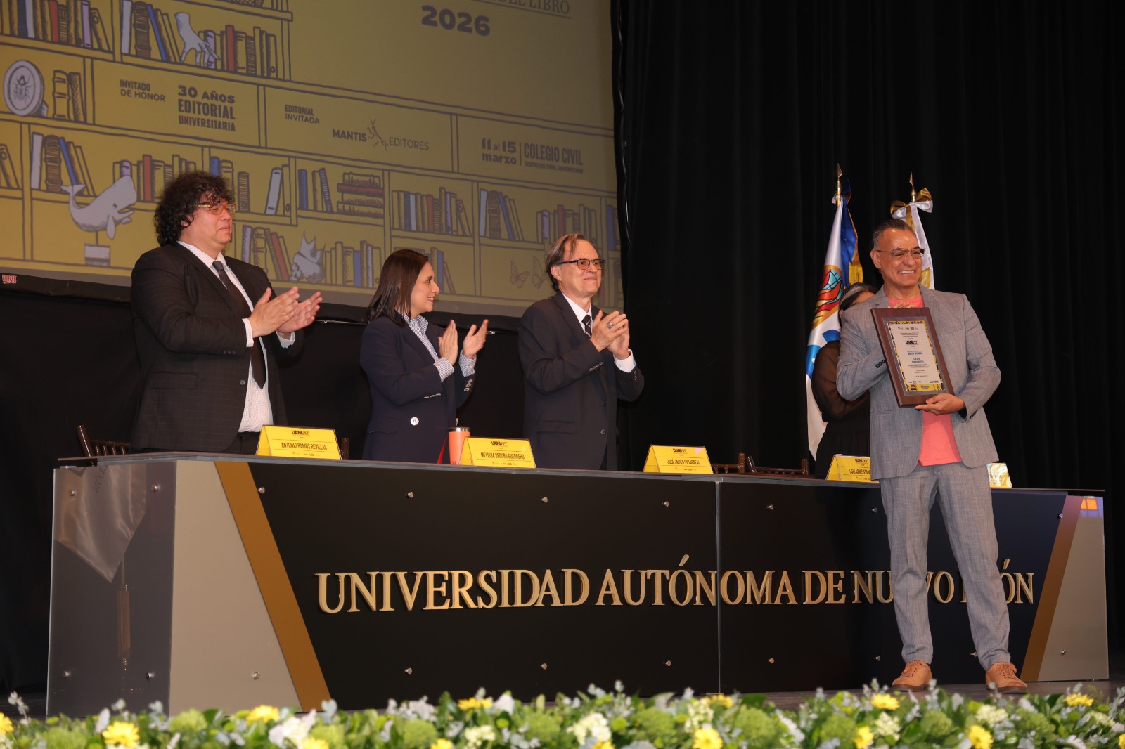 UANLeer 2026 también festeja las tres décadas del sello Mantis Editores. Por ello, en la ceremonia de inauguración se entregó el Reconocimiento al Mérito Editorial al poeta, ensayista y traductor Luis Armenta Malpica.